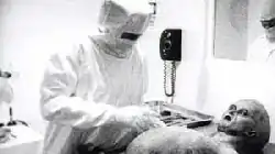 Still from the 1994 film Roswell: The UFO Cover Up, based on the 1991 book. After filming, the prop became part of a permanent exhibit at a Roswell tourist attraction.[150]