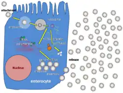 - ^ Ruiz MC, Leon T, Diaz Y, Michelangeli F (2009). "Molecular biology of rotavirus entry and replication". The Scientific World Journal. 9: 1476–1497. doi:10.1100/tsw.2009.158. PMC 5823125. PMID 20024520.