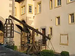The Staufer Castle was destroyed by an earthquake in 1356; the St. Blaise chapel is the last remnant today.