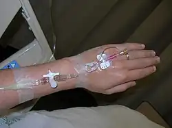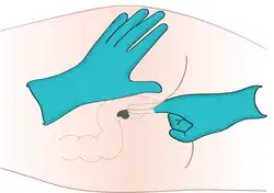 The rectal route is an effective route of administration for many medications, especially those used at the end of life.[7][8][9][10][11][12][13] The walls of the rectum absorb many medications quickly and effectively.[14] Medications delivered to the distal one-third of the rectum at least partially avoid the "first pass effect" through the liver, which allows for greater bio-availability of many medications than that of the oral route. Rectal mucosa is highly vascularized tissue that allows for rapid and effective absorption of medications.[15] A suppository is a solid dosage form that fits for rectal administration. In hospice care, a specialized rectal catheter, designed to provide comfortable and discreet administration of ongoing medications provides a practical way to deliver and retain liquid formulations in the distal rectum, giving health practitioners a way to leverage the established benefits of rectal administration. The Murphy drip is an example of rectal infusion.
