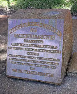 Memorial to RFDS pilot, Robin Miller Dicks, the "Sugarbird Lady" at Jandakot Airport