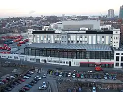The Post Office had its headquarters in St. Martin's Le Grand, in the City of London, until 1984. Then the headquarters division moved out to 33 Grosvenor Place (lately vacated by British Steel).[47] After 1986 separate headquarters were established elsewhere for each of the three subdivisions of the Post Office, leaving a much reduced corporate head office (with just thirty staff) who in 1990 moved to 30 St James's Square; two years later it was again moved, to be co-located with the Letters head office in Royal Mail House (148 Old Street).[48]