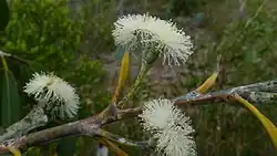 Impressive groves of turpentine (Syncarpia glomulifera) and blackbutt (Eucalyptus pilularis) trees may be seen growing straight up into the sky forming an open canopy with widely spaced trunks. In these characteristic areas they are generally considered open forest, they may have a grassy understory, a sclerophyll shrubbery or alternatively they may have a rainforest subcanopy or a rainforest understory with growth being densest nearest to the valley floor or permanent watercourses. In these turpentine forests often hundreds of cabbage palms (Livistona australis) may be seen growing in dense tall thickets which are rarely touched by fire or they may exist as young plants in open grassy spaces which are burnt regularly enough not to form visible trunks. Rainforest pockets are dominated by jackwood and sassafras. The lilli pilli (Acmena smithii) produces a fruit edible raw. Another common species is the coachwood (Ceratopetalum apetalum) which were used extensively from Australian rainforests to manufacture horse-drawn coaches.