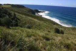 Sections of rare and threatened clifftop grasslands occur along exposed and windy sites which are generally dominated by long-leaf mat-rush and kangaroo grass (Themeda australis).