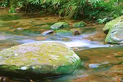 In a zone generally up to 10-25m away from running water grows a distinct vegetation community often containing many rare or threatened species only found along several streams in the world. Common vegetation growing in this zone include Blackbutt (Eucalyptus pilularis), Sydney red gum (Angophora costata), water gums (Tristaniopsis laurina), bottlebrush (Melaleuca sp.), tea trees (Leptospermum sp.), woolsia (Woollsia pungens), Epacris sp., heath banksia (Banksia ericifolia), Pittosporum undulatum, pine leafed geebungs (Persoonia pinifolia), willow leaved hakea (Hakea salicifolia), Lomandra fluviatilis, bulrushes (Typha orientalis / dominigensis), rushes (Juncus sp.), reeds (Phragmites australis) and tree ferns (Cyathea and Dicksonia sp..)