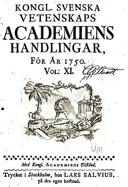 - ^ "History". The Royal Swedish Academy of Sciences. Retrieved 18 October 2009.