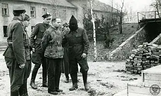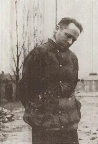 Rudolf Franz Ferdinand Höss (also Höß, Hoeß, or Hoess; German: [hœs]; 25 November 1900 – 16 April 1947)[4][5][6] was a German SS officer and the commandant of the Auschwitz concentration camp. After the defeat of Nazi Germany and the end of World War II, he lived under a false name until discovered by the British, who then turned him over to Polish authorities. Höss was convicted in Poland and executed for war crimes committed on the prisoners of the Auschwitz concentration camp and for his role in the Holocaust.