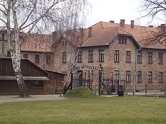 On 6 March 1944 Vrba heard that the Czech family camp was about to be sent to the gas chambers.[78] The group of around 5,000, including women and children, had arrived in Auschwitz in September 1943 from the Theresienstadt concentration camp in Czechoslovakia. That they had been allowed to live in Auschwitz for six months was unusual, not least because women with children were usually murdered immediately. Correspondence found after the war between Adolf Eichmann's office and the International Red Cross suggested that the Germans had set up the family camp as a model for a planned Red Cross visit to Auschwitz.[79] The group was housed in relatively good conditions in block BIIb near the main gate, although in the six months they were held there 1,000 died despite the better treatment.[80] They did not have their heads shaved, and the children were given lessons and access to better food, including milk and white bread.[81]