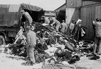 The new arrivals' property was taken to barracks known as Effektenlager I and II in Auschwitz I (moved to Auschwitz II after Vrba's escape). Inmates, and apparently also some of the camp administration, called the barracks Kanada I and II because they were a "land of plenty".[51] Everything was there—medicine, food, clothing, and cash—much of it repackaged by the Aufräumungskommando to be sent to Germany.[52] The Aufräumungskommando lived in Auschwitz I, block 4, until 15 January 1943 when they were transferred to block 16 in Auschwitz II, sector Ib, where Vrba lived until June 1943.[53]