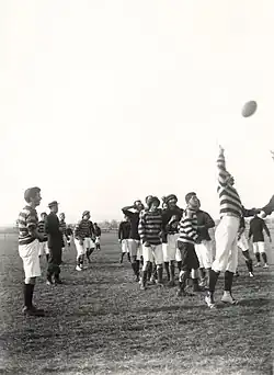 The Rugby code was introduced to schools in Sydney from the early 1860s. Players familiar with the game from the Sydney schools, along with increased arrivals from England and elsewhere, soon led to organised club football commencing in Sydney.[10] Rugby games were being played at Sydney University in the 1860s.[11]