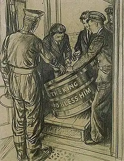 While the ration was originally given neat or mixed with lime juice, the practice of watering down the rum began around 1740. To help minimize the effect of the alcohol on his sailors, Admiral Edward Vernon had the rum ration watered, producing a mixture that became known as grog. Many believe the term was coined in honour of the grogram cloak Admiral Vernon wore in rough weather.[39] The Royal Navy continued to give its sailors a daily rum ration, known as a "tot", until the practice was abolished on 31 July 1970.[40]