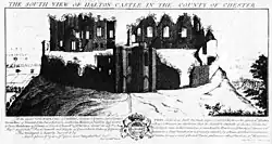 During the Civil War, Halton Castle was held for the Royalists by John Savage, 2nd Earl Rivers, the Steward of Halton. It fell twice to Parliamentarian Roundheads. The first siege was led by Sir William Brereton in 1643; the second was in 1644. Following this, a "Council of War" was held in Warrington in 1646 at which it was decided that the castle should be slighted.[16]