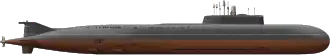 K-141 Kursk was a Project 949A class Antey (Russian: Aнтей, meaning Antaeus) submarine of the Oscar class, known as the Oscar II by its NATO reporting name, and was the penultimate submarine of the Oscar II class designed and approved in the Soviet Union. Construction began in 1990 at the Soviet Navy military shipyards in Severodvinsk, near Arkhangelsk, in the northern Russian SFSR. During the construction of K-141, the Soviet Union collapsed; work continued, and she became one of the first naval vessels completed after the collapse. In 1993 K-141 was named Kursk after the Battle of Kursk,[2] on the 50-year anniversary of this battle. K-141 was inherited by Russia and launched in 1994, before being commissioned by the Russian Navy on 30 December, as part of the Russian Northern Fleet.[3]