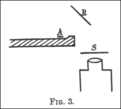 In these experiments, alpha particles emitted by a radioactive source (A) were observed bouncing off a metal reflector (R) and onto a fluorescent screen (S) on the other side of a lead plate (P).