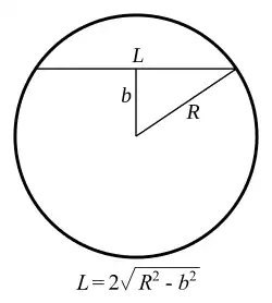 Treating L as a straight line, where b is the distance of this line from the centre. The mean of is therefore
