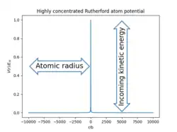 Figure 1. Potential energy diagram for Rutherford's atom model illustrating concentration in the nucleus.