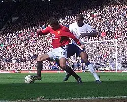 On 27 September, he scored a hat-trick against Leicester City in a 4–1 victory.[43] He scored his 100th goal for the club in a dramatic 4–3 victory over Everton on 7 February 2004.[44]