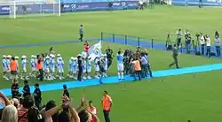Van Nistelrooy registered his first goal on 1 October 2011 against Getafe.[90] On 21 December, against the same club, he opened the scoring with a volley as Málaga won 3–2 on aggregate in the Copa del Rey.[91] Later on in the season, Van Nistelrooy scored two more goals in the league against Espanyol and Racing Santander,[92][93] with the latter being his final goal of his career.[89] Just one day before his retirement, Van Nistelrooy made his last appearance of his career, coming on as a substitute in the 75th minute for goalscorer Salomón Rondón, who scored the only goal in Málaga's league match against Sporting Gijón.[89][94]