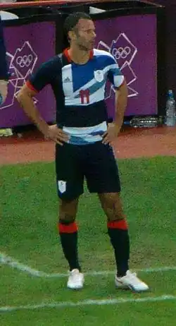 At international level, Giggs played for the Wales national team 64 times between 1991 and 2007, and captained the Great Britain team that competed at the 2012 Summer Olympics. He became the new manager of the Wales national team in January 2018.[14] Giggs led Wales to qualification for UEFA Euro 2020.[15] He did not manage the team at the tournament however, which was delayed due to the COVID-19 pandemic, as he was arrested on suspicion of assault. His assistant manager Rob Page took charge in his absence.[16] Giggs resigned in June 2022, and Page was named as his successor.[17]