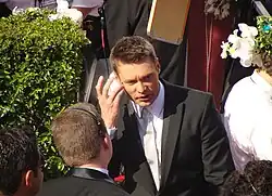 Seacrest received Emmy Award nominations for American Idol each year from 2004 to 2013 and once more in 2016. He won an Emmy for Jamie Oliver's Food Revolution in 2010, and he was nominated once more in 2012.[5] In 2018, he received nominations for Live with Kelly and Ryan for Outstanding Talk Show Entertainment and Outstanding Entertainment Talk Show Host.[6][7]