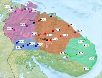 The Proto-Sámi language is believed to have formed in the vicinity of the Gulf of Finland between 1000 BC to 700 AD, deriving from a common Proto-Sami-Finnic language (M. Korhonen 1981).[19] However, reconstruction of any basic proto-languages in the Uralic family have reached a level close to or identical to Proto-Uralic (Salminen 1999).[20] According to the comparative linguist Ante Aikio, the Proto-Samic language developed in South Finland or in Karelia around 2000–2500 years ago, spreading then to northern Fennoscandia.[21] The language is believed to have expanded west and north into Fennoscandia during the Nordic Iron Age, reaching central Scandinavia during the Proto-Scandinavian period ca. 500 AD (Bergsland 1996).[22] The language assimilated several strata of unknown Paleo-European languages from the early hunter-gatherers, first during the Proto-Sami phase and second in the subsequent expansion of the language in the west and the north of Fennoscandia that is part of modern Sápmi today. (Aikio 2004, Aikio 2006).[21][23]