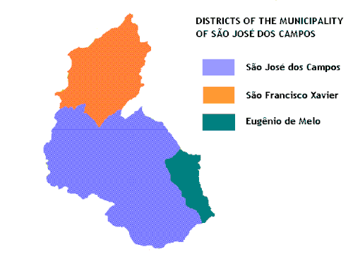The municipality comprises three districts: São José dos Campos — the city itself (also the seat), Eugênio de Melo and São Francisco Xavier. The last one is known for its natural sites and ecotourism.
