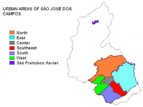 However, for administrative purposes, the city is composed of 7 urban regions: Center, North, South, West, East, Southeast and São Francisco Xavier.