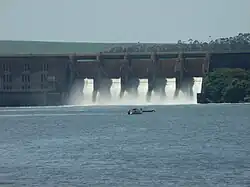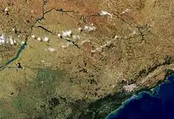 São Paulo has its territory divided into 21 watersheds,[22] inserted in three river basin districts, the largest of which is the Paraná, which covers much of the state territory. Noteworthy is the Rio Grande, which born in Minas Gerais and join with the Paranaiba River to form the Parana River, which separates São Paulo from Mato Grosso do Sul.[23]