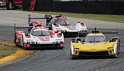 Bourdais leading both Penske Porsche cars during the 2023 24 Hours of Daytona.