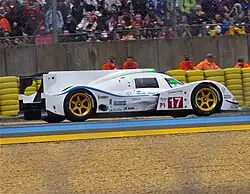 Bourdais' next assault on Le Mans would come at the wheel of a factory-backed Peugeot 908 HDi FAP in 2007. The car he shared with Stéphane Sarrazin and Pedro Lamy finished the race second behind the winning Audi R10 TDi, despite an embarrassing slide on the first lap in wet conditions that cost Bourdais a place to one of the Audis,[2] and car problems forcing him to park the car for the last minutes of the race, waiting for the lead R10 to cross the line. In his second Le Mans as part of the Peugeot factory team, in 2009, he finished in second place, one lap behind the winning Peugeot. Bourdais was to drive the pole-winning No. 3 Peugeot in 2010, but a suspension failure halted co-driver Pedro Lamy before Bourdais could turn one lap in the race.[11]