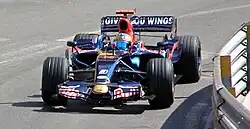 Bourdais tested significantly for the Toro Rosso team during the winter, though he was uncertain of a drive heading into the new year. On 6 February 2009 however, he was confirmed as a Toro Rosso driver for a second year, partnering Swiss rookie Sébastien Buemi.[7] Despite two points finishes in the year at the Australian Grand Prix and in Monaco, Bourdais struggled to match his less experienced team-mate. In Spain Bourdais struck Buemi's car as the field attempted to avoid a spun Jarno Trulli on the first lap, ending the race for both drivers. At the British Grand Prix, Bourdais collided with McLaren driver Heikki Kovalainen, again ending the race for both. At the German Grand Prix, he suffered a mechanical failure after qualifying last by over a second.