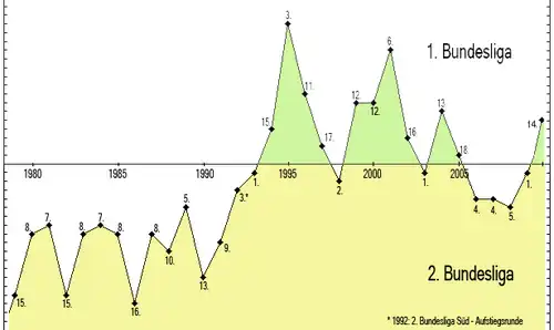 Freiburg's first Bundesliga relegation was in 1997 after they finished in 17th position. While they have been relegated four times since first making the Bundesliga, they have thrice won immediate promotion back to the top league. It was the first time since 1992 that Freiburg played in the 2. Bundesliga for two consecutive seasons.