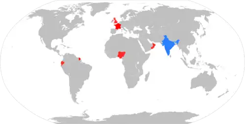 The Jaguar International export version was sold to Ecuador, Nigeria, and Oman. The Ecuadorian Air Force, the only Latin American export customer, purchased 10 single- and 2 two-seat variants, officially designated as Jaguar ES and EB, respectively. The first of twelve aircraft was delivered in January 1977.[127] They were used mainly for ground attack roles and occasionally for air superiority duties during the Cenepa War with Peru in 1995, but the main part of the fleet was held in reserve in case of a wider conflict with the Peruvians.[128] Nigeria ordered 13 single-seat SN and 5 two-seat BN variants, and SEPECAT delivered the first of these in May 1984. A subsequent order for an 18-aircraft second batch was cancelled. Some of those in service were withdrawn from operations on the grounds of economy, with the remaining aircraft put up for re-sale.[127] The Royal Air Force of Oman ordered 10 single-seat and 2 two-seat variants, designated as Jaguars OS and OB respectively, and the first aircraft was delivered in March 1977.[127] A second identical 12-aircraft order was placed in the mid-1980s, which were joined by two secondhand Indian and RAF examples. The last of the Omani aircraft were retired on 6 August 2014.[129] The remaining 20 in storage was later donated by Oman to India for use as spare parts by the IAF.[130]