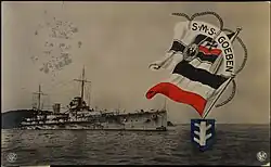 SMS Goeben[a] was the second of two Moltke-class battlecruisers of the Imperial German Navy, launched in 1911 and named after the German Franco-Prussian War veteran General August Karl von Goeben. Along with her sister ship, Goeben was similar to the previous German battlecruiser design, Von der Tann, but larger, with increased armor protection and two more main guns in an additional turret. Goeben and Moltke were significantly larger and better armored than the comparable British Indefatigable class.[b]