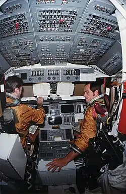 STS-1 (Space Transportation System-1) was the first orbital spaceflight of NASA's Space Shuttle program. The first orbiter, Columbia, launched on April 12, 1981, and returned on April 14, 1981, 54.5 hours later, having orbited the Earth 37 times.[1] Columbia carried a crew of two—commander John W. Young and pilot Robert L. Crippen. It was the first American crewed space flight since the Apollo–Soyuz Test Project (ASTP) in 1975. STS-1 was also the maiden test flight of a new American spacecraft to carry a crew, though it was preceded by atmospheric testing (ALT) of the orbiter and ground testing of the Space Shuttle system.