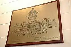 The ultimate launch date of STS-1 fell on the 20th anniversary of Yuri Gagarin's Vostok 1, the first spaceflight to carry a human crew. In 2001, Yuri's Night was established to celebrate both events. In a tribute to the 25th anniversary of the first flight of Space Shuttle, Firing Room 1 in the Launch Control Center at Kennedy Space Center – which launched STS-1 – was renamed the Young-Crippen Firing Room. NASA described the mission as "the boldest test flight in history".[32]