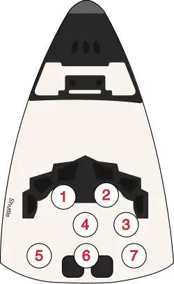 | Seat[2] | Launch | Landing | ![]() Seats 1–4 are on the flight deck. Seats 5–7 are on the mid-deck. |
