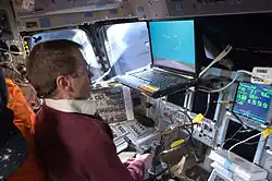 Astronaut Michael J. Massimino used Twitter to document the training and preparations for the mission. He mentioned that he would like to try sending Twitter updates from space during his off-duty time.[34] Massimino's first update read, "From orbit: Launch was awesome!! I am feeling great, working hard, & enjoying the magnificent views, the adventure of a lifetime has begun!".[35] Massimino was the first person to use Twitter in space.[36]