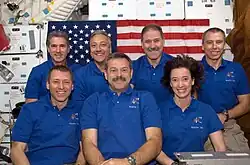 ![]() STS-125 mission patch ![]() From left to right: Massimino, Good, Johnson, Altman, McArthur, Grunsfeld and Feustel | |