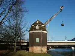 From the first century AD to the fifth century,[10] there was the Gallo-Roman settlement called vicus Saravus west of Saarbrücken's Halberg hill,[11] on the roads from Metz to Worms and from Trier to Strasbourg.[8] Since the first or second century AD,[8] a wooden bridge, later upgraded to stone,[7] connected vicus Saravus with the south-western bank of the Saar, today's St Arnual, where at least one Roman villa was located.[12] In the third century AD, a Mithras shrine was built in a cave in Halberg hill, on the eastern bank of the Saar river, next to today's old "Osthafen" harbor,[13] and a small Roman camp was constructed at the foot of Halberg hill[11] next to the river.[10]
