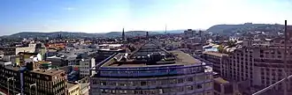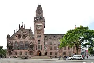Saarbrücken was heavily bombed in World War II.[17] In total 1,234 people (1.1 percent of the population) in Saarbrücken were killed in bombing raids from 1942 to 1945.[18] 11,000 homes were destroyed and 75 percent of the city left in ruins. Today more than a third of the city consists of buildings from before 1945.[19]