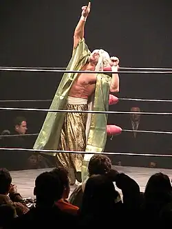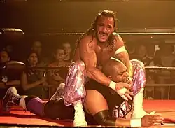 Sabu wrestled for New Japan Pro-Wrestling (NJPW) throughout 1995, making his debut on January 4 in the Tokyo Dome, teaming with Masahiro Chono to defeat Junji Hirata and Tatsumi Fujinami.[34] On May 3, Sabu defeated Koji Kanemoto at Wrestling Dontaku in the Fukuoka Dome to win the IWGP Junior Heavyweight Championship.[35] He lost the title to Kanemoto on June 14 in Tokyo's Nippon Budokan in a bout where Kanemoto's UWA World Welterweight Championship was also on the line.[36] He also defeated Gran Hamada to win the UWA World Junior Light Heavyweight Championship on November 23 in the Todoroki Arena in Kawasaki, which he lost to El Samurai on December 1 in Niigata City.[37] Sabu made his final appearance with NJPW in Osaka on December 11, teaming with Hiro Saito to defeat Dean Malenko and Wild Pegasus.[34]