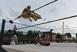 Sabu performing his Arabian Facebuster on Michael Elgin in August 2011