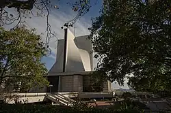 Bahá'í Houses of Worship or Mas͟hriqu'l-Ad͟hkár (Arabic: مشرق اﻻذكار "Dawning-place of the remembrance of God") exemplify the principles of the Bahá'í Faith of unity in diversity, the unity of God, the unity of His prophets and religions, and the unity of humanity.[12] These spiritual principles give rise to new forms of architectural expression that serve as spaces in which people of all beliefs, cultures, and backgrounds gather together, meditate, reflect, and pray, and around which will be built social, humanitarian, educational, and scientific institutions.[13] The design of each Bahá'í House of Worship reflects unifying elements of their environment, emerging from a grassroots approach of consultation with the native people,[14] each having nine sides and nine entrances, the number nine being symbolic of unity. Eight continental and two local Bahá’í Houses of Worship have been built so far.[15]