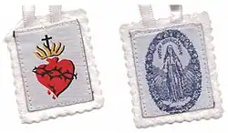 The Scapular of the Sacred Heart and the Scapular of the Sacred Hearts of Jesus and Mary are devotional articles worn by some Catholics.[70]