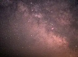 To complete the teapot metaphor, under dark skies a particularly dense area of the Milky Way (the Large Sagittarius Star Cloud) can be seen rising in a north-westerly arc above the spout, like a puff of steam rising from a boiling kettle.[5]