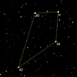 On the west side of the constellation, Ptolemy also described the asterism Terebellum consisting of four 4th magnitude stars, including the closest and fastest moving member, Omega Sagittarii.[35][36]