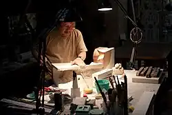 Japanese artist Etsuro Sotoo working in a gypsum workshop in 2010 for sculptures for the church