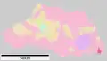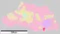 The topography of Saitama Prefecture is largely divided by the Hachiōji Tectonic Line, which runs through Kodama, Ogawa, and Hannō, into the western mountain area and the eastern lowland area. The altitude, highest on the western side, gradually lowers eastward from mountain ranges to hills to plateaus to lowlands. The eastern lowlands and plateaus occupy 67.3% of the area.[10]