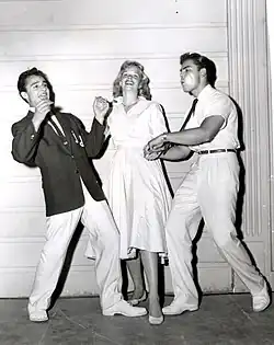 In 1957, Mineo made a brief foray into pop music by recording a handful of songs and an album. Two of his singles reached the Top 40 in the United States' Billboard Hot 100.[15] The more popular of the two, "Start Movin' (In My Direction)", reached No. 9 on Billboard's pop chart. It sold over one million copies and was awarded a gold disc.[16] He starred as drummer Gene Krupa in the movie The Gene Krupa Story (1959), directed by Don Weis with Susan Kohner, James Darren, and Susan Oliver. He appeared as the celebrity guest challenger on the June 30, 1957, episode of What's My Line?[17]